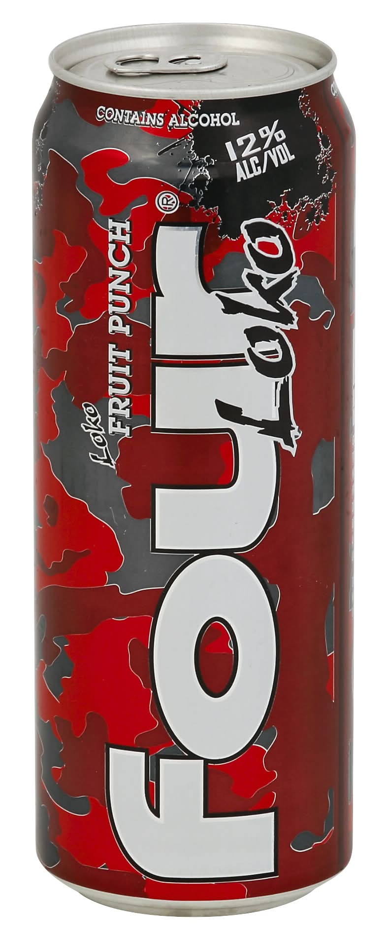 • Brand: Four loko • Flavor: Fruit punch • Alcohol by volume: 12%