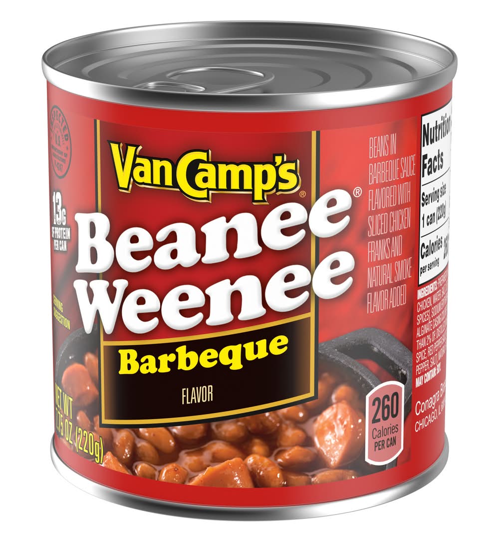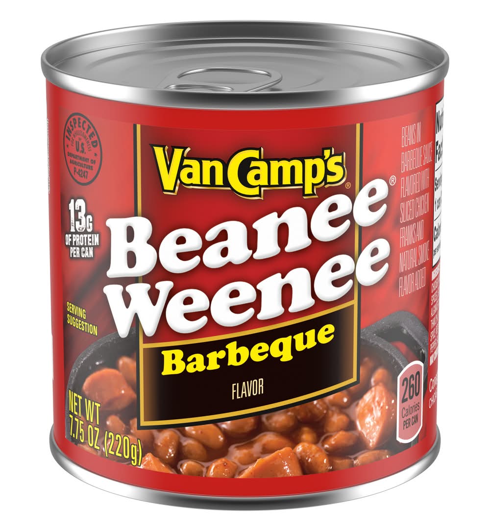 Delicious Van Camp's Barbeque Beanee Weenee is a convenient canned food that's ready to heat and eat. Van Camp’s signature canned beans are combined with tasty sliced chicken franks and then simmered to perfection in a savory, perfectly seasoned zesty barbeque flavored sauce. Enjoy these BBQ beans and hot dogs for a snack, as part of a meal or as a side dish. There are 13 grams of protein per serving. Preparing these beans and weenies is simple; just heat on the stovetop or in the microwave for a convenient treat that's ready in minutes. This 7.75 ounce can of hot dog weenies and beans is easy to store in the pantry. Van Camp’s has been making delicious beans for more than 140 years. Number of servings: 1