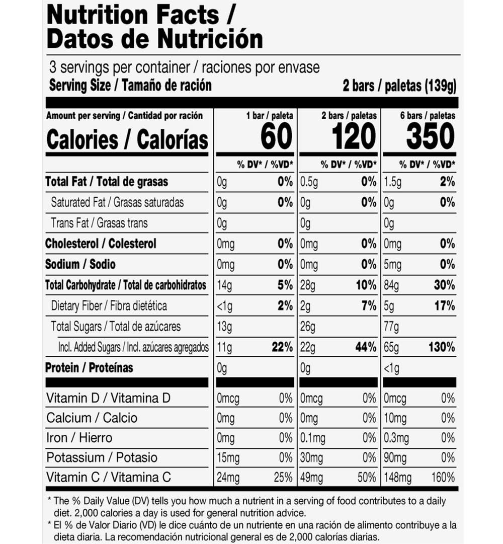 Ingredients: Blueberry Puree, Water, Cane Sugar, Acai Puree, Guar Gum, Carob Bean Gum, Ascorbic Acid (Vitamin C), Pectin, Black Carrot Juice Concentrate Color, Lemon Juice Concentrate.
