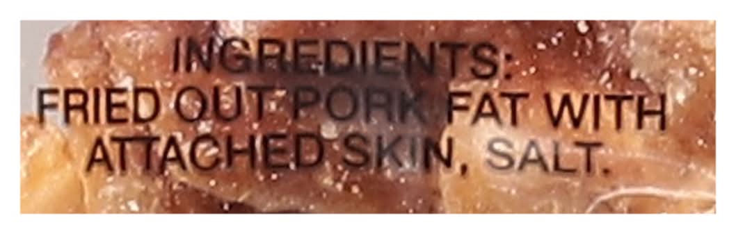 Ingredients: Fried Out Pork Fat with Attached Skin, Salt