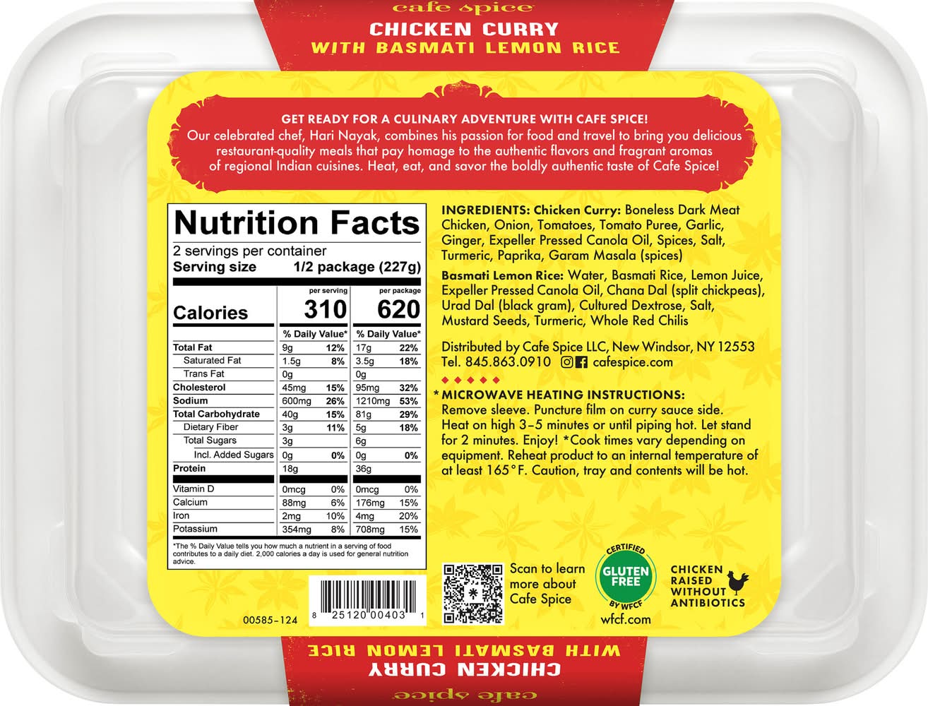 Mild Chicken Curry with Basmati Lemon Rice • Number of servings: 2 • Cafe Spice Global Cuisine, New Windsor, NY, 12553 • Packaging: Reusable