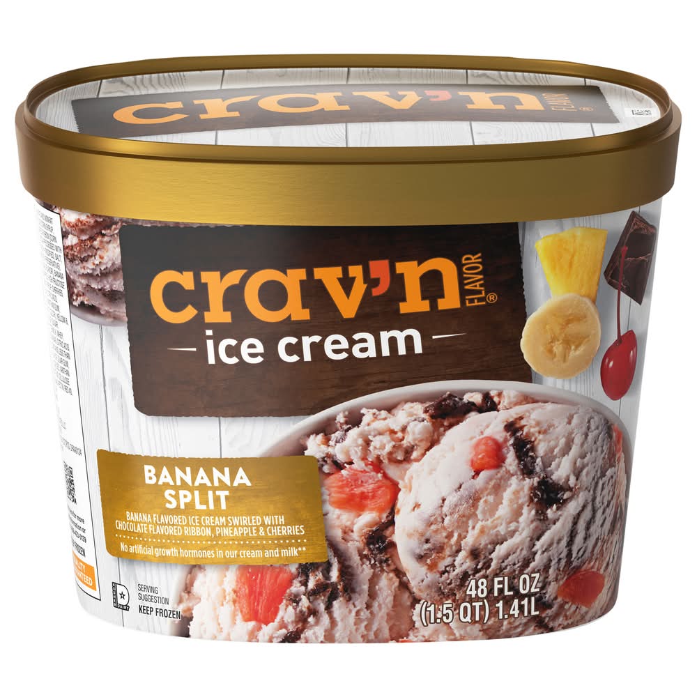 Crav'n Flavor Ice Cream, Banana Split (48 fl oz)