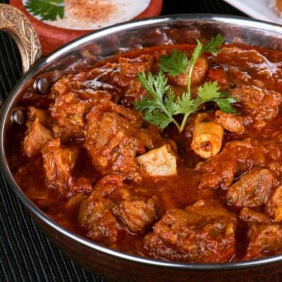 Lamb meat cooked in onion based thick gravy with spices & mixed pickles