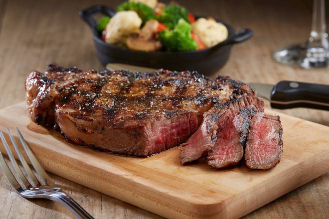 Juicy, well-marbled, 14 oz. rib-eye | savory steakhouse-style rub *Pre-cooked weight