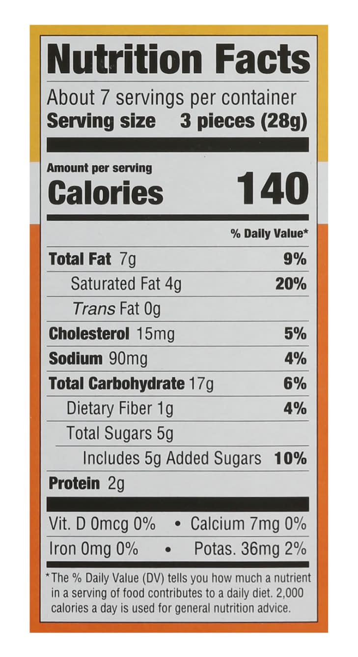 Ingredients: Wheat Flour, Oats, Butter, Cane Sugar, Organic Palm Oil (RSPO Certified Sustainable Palm Oil), Water, Kosher Salt, Baking Soda Contains: Milk, Wheat, Eggs, Peanuts, Soybeans, Tree Nuts