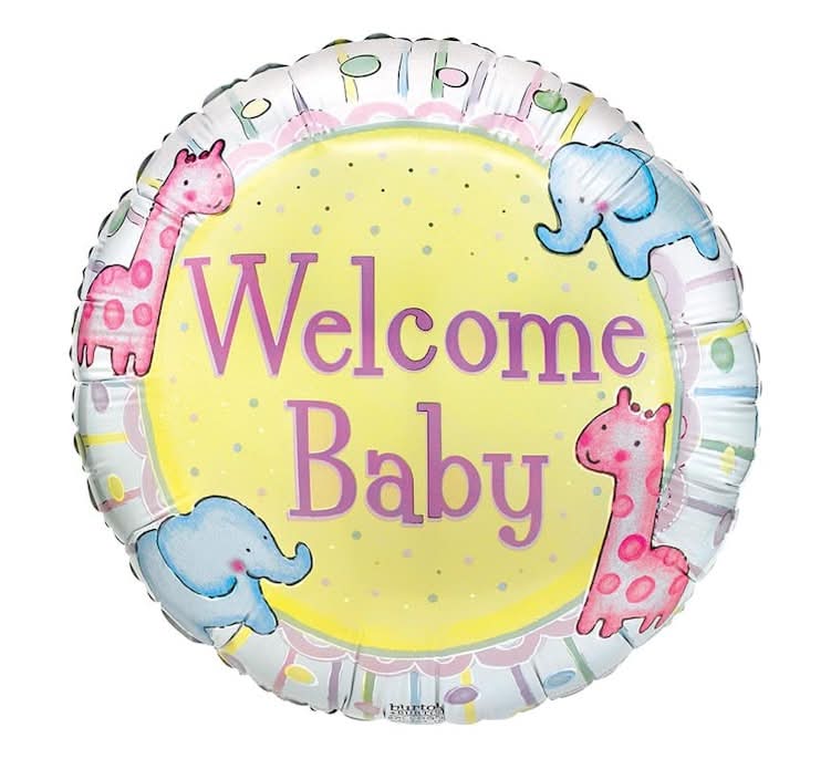 Welcome baby! This 17 inch round balloon features a Welcome Baby message and is the perfect addition to any floral bouquet or arrangement to make baby's first days extra special. Balloon is printed on both sides with the same design and message. Helium filled. Subject to substitution based on local availability.