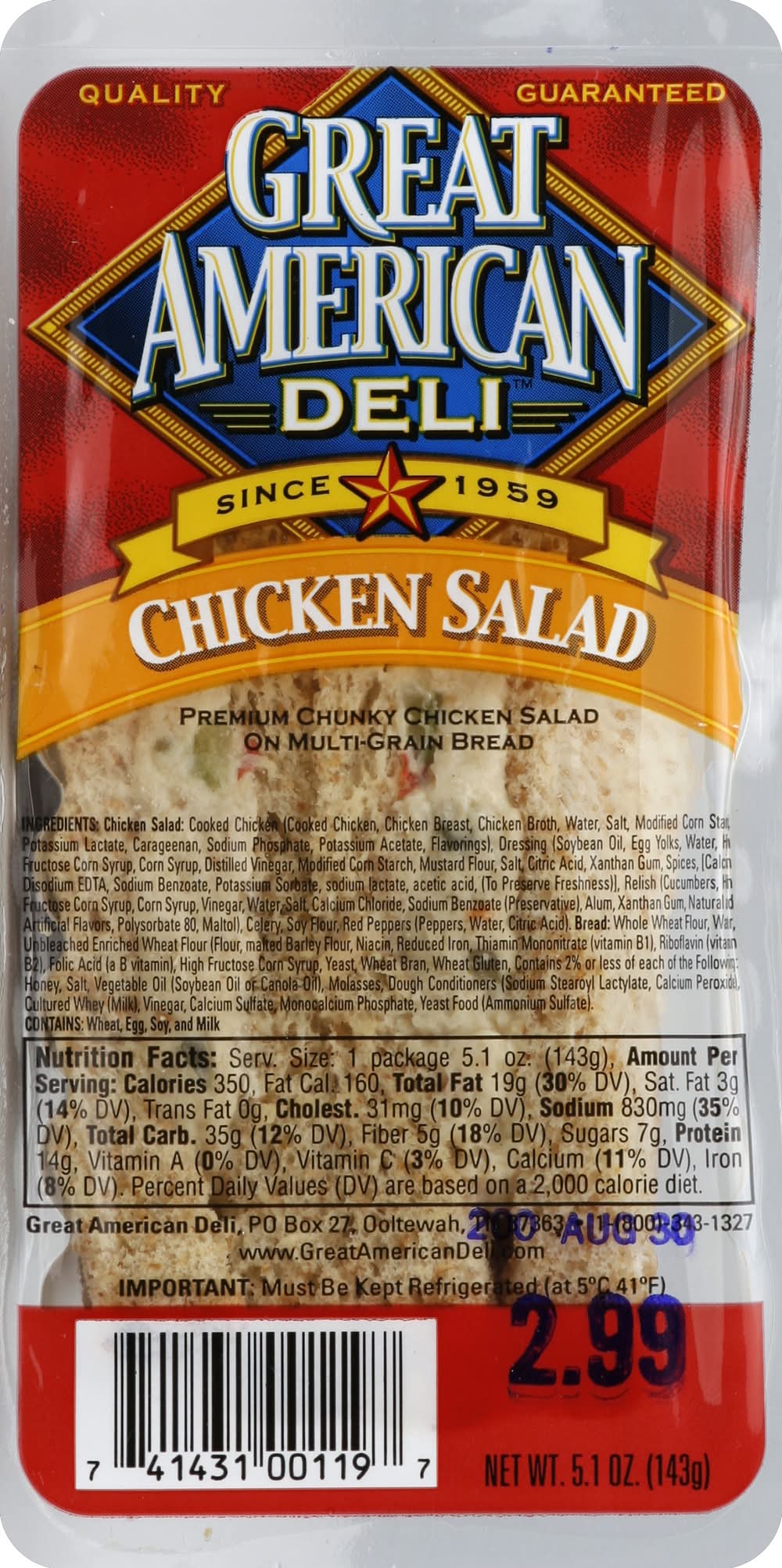 Great American Deli Chicken Salad With Multi-Grain Bread (5.1 oz)