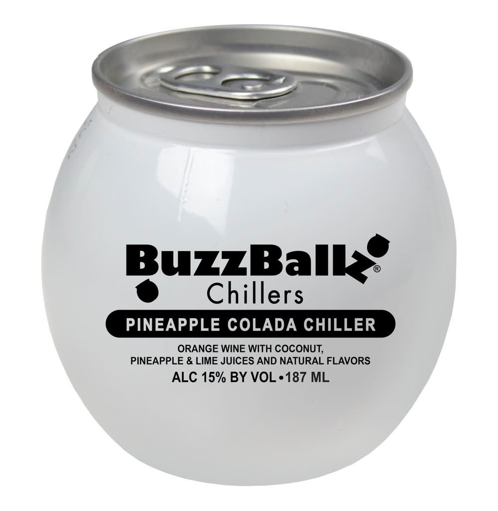 Escape to a getaway in your living room with the fresh, tropical flavors of a piña colada on the rocks. This premixed cocktail combines the sweet, natural flavors of pineapple and coconut to give you the taste of your favorite summer cocktail all year round. • Brand: Buzzballz • Category: Wine spritzer • Flavor: Pineapple colada • Alcohol by volume: 15% • Packaging: Reusable