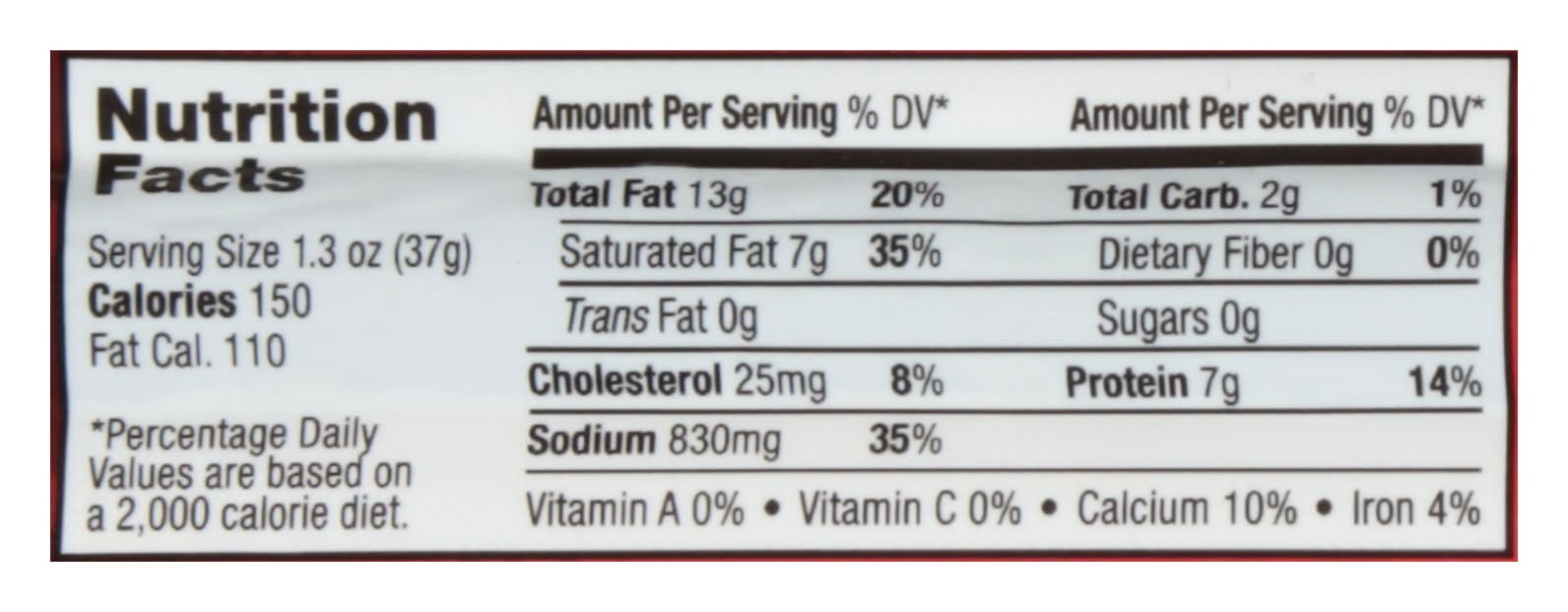 Ingredients: Beef, Beef Hearts, Water, Reduced Lactose Whey (Contains Milk), Hydrolyzed Corn Protein, Corn Syrup Solids, Salt, Flavorings, Monosodium Glutamate, Dextrose, Sodium Phosphate, Sodium Erythorbate, Lactic Acid Starter Culture, Sodium Nitrite, BHA, BHT, Pasteurized Process Cheese Food: Natural American and Monterey Pepper Jack Cheeses (Cultured Pasteurized Milk, Red and Green Jalapeno Peppers, Salt, Enzymes), Water, Sodium Phosphate, Salt, Sorbic Acid (Preservative), Natural Flavoring, Color (Paprika and Turmeric Extract) Contains: Lactose, Milk