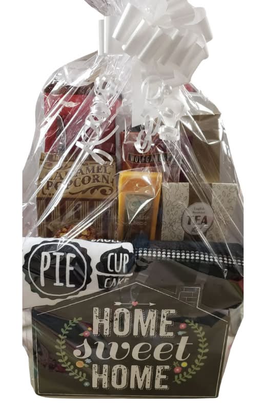 Home Sweet Home (Chocolate Fudge Cookies, Cheese, Carrs Crackers, Assorted Gourmet Chocolates, Wolfgang Puck Gourmet Coffee, English Breakfast Tea, Caramel Corn, Honey Dipping Pretzels, Dipping Mustard And A Set Of Kitchen Dish Towels)