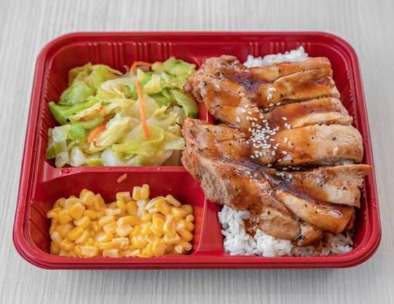 Freshly grilled boneless chicken thigh meat topped with our home made sweet and tangy sticky teriyaki sauce. Served with sweet corn and fresh salad.