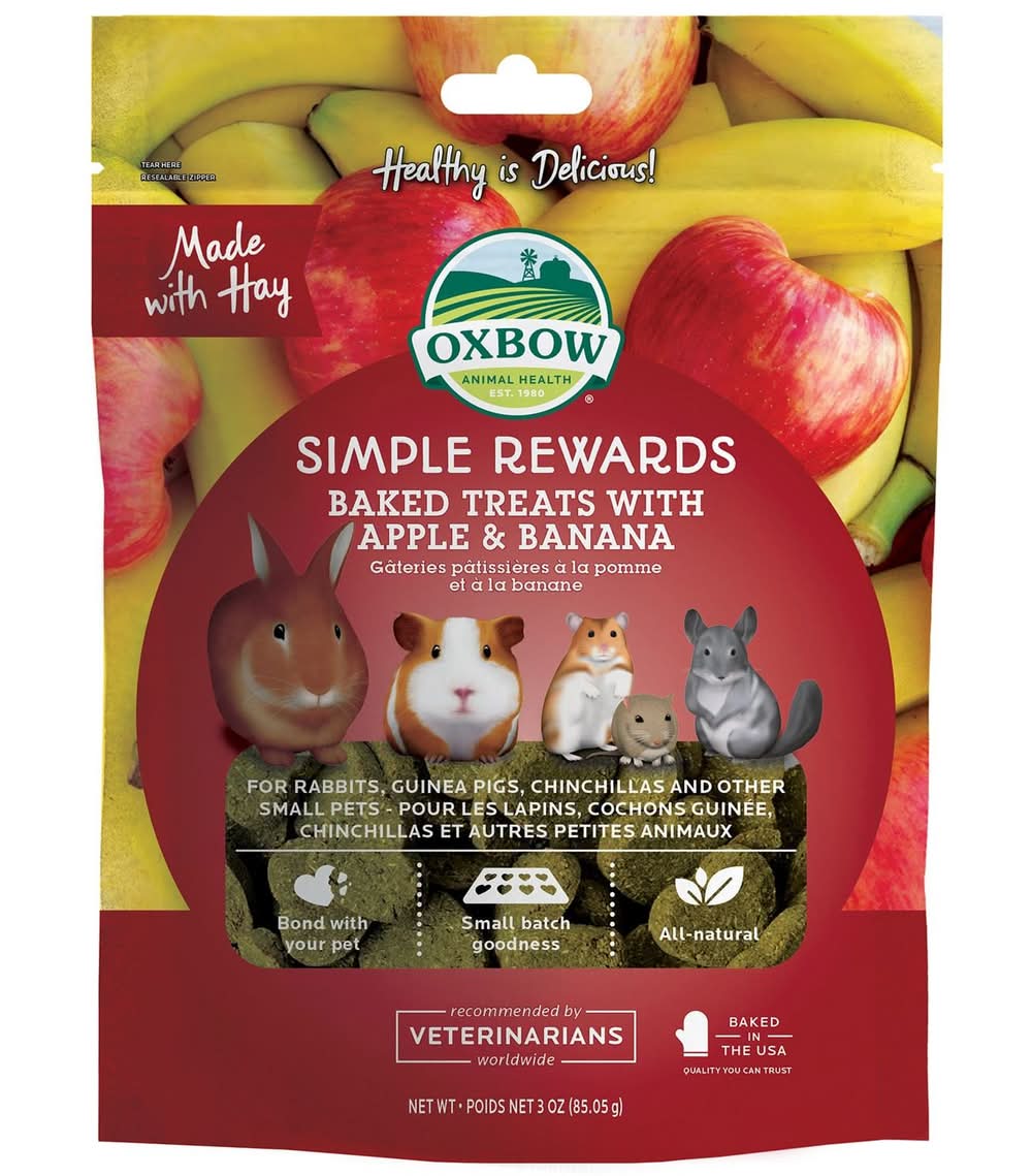 Oxbow Simple Rewards Apple & Banana Baked Small Animal Treats, 3 oz