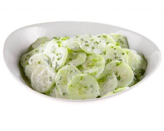 Homemade yogurt sauce, fresh cucumber with dill, olive oil, and a hint of fresh garlic.