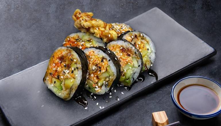 Fried soft-shell crab, Spicy crab meat, Avocado, Cucumber, Sesame