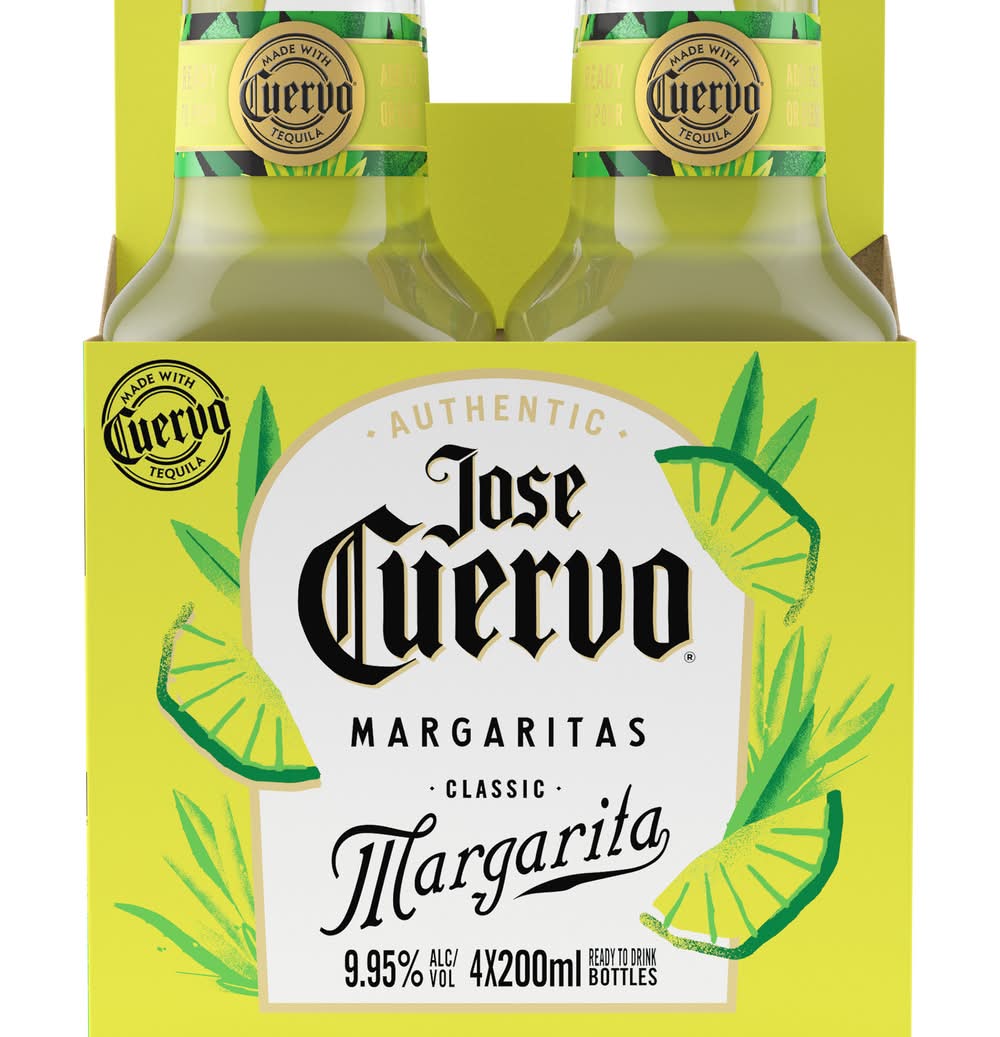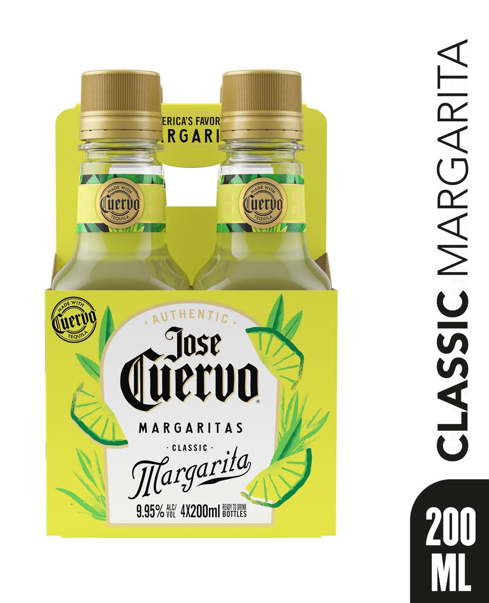Cuervo ready-to-serve margaritas come in many classic, fruity and fun flavors made exclusively with Jose Cuervo® tequila. Jose Cuervo® Authentic Margaritas offer the convenience of a one-step margarita with plenty of ways to enjoy it: • Pour over Ice • Blend • Make it a spritz/add sparkling water • Garnish with a lemon slice or pink dragon fruit • Sugar rim recommended! • Brand: Jose cuervo • Pack size: 4 • Alcohol by volume: 9.94% • Packaging: Reusable