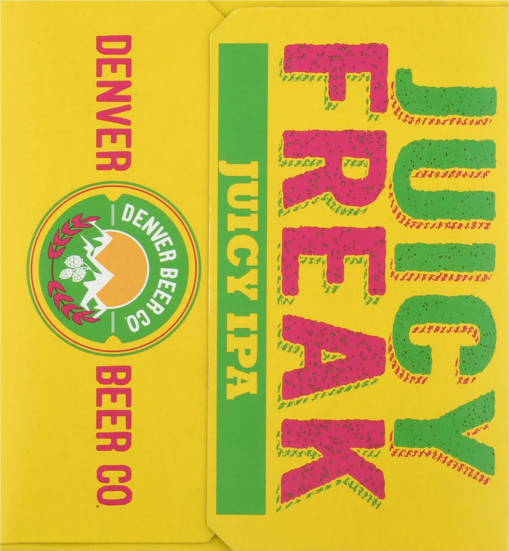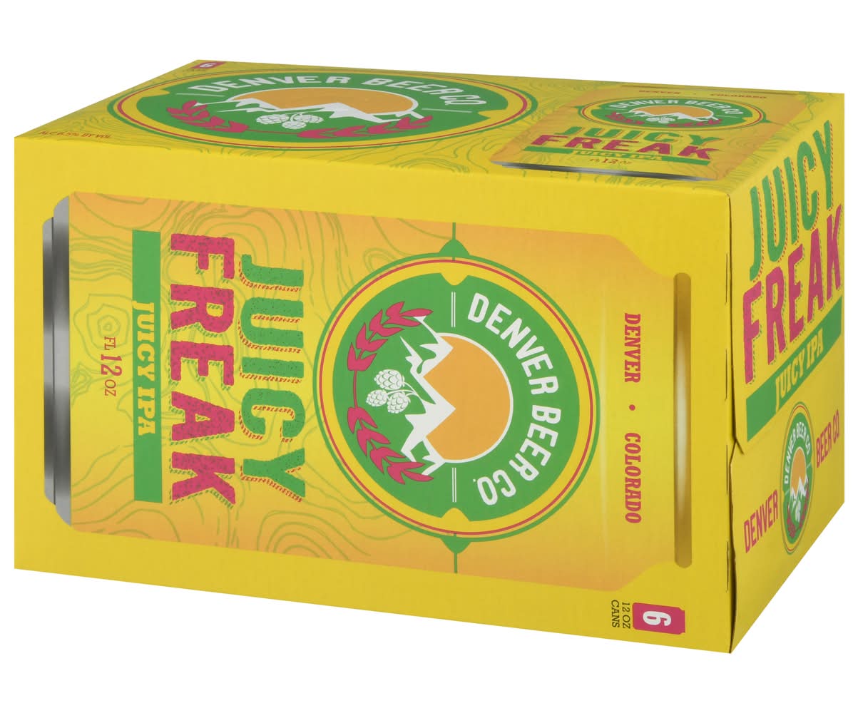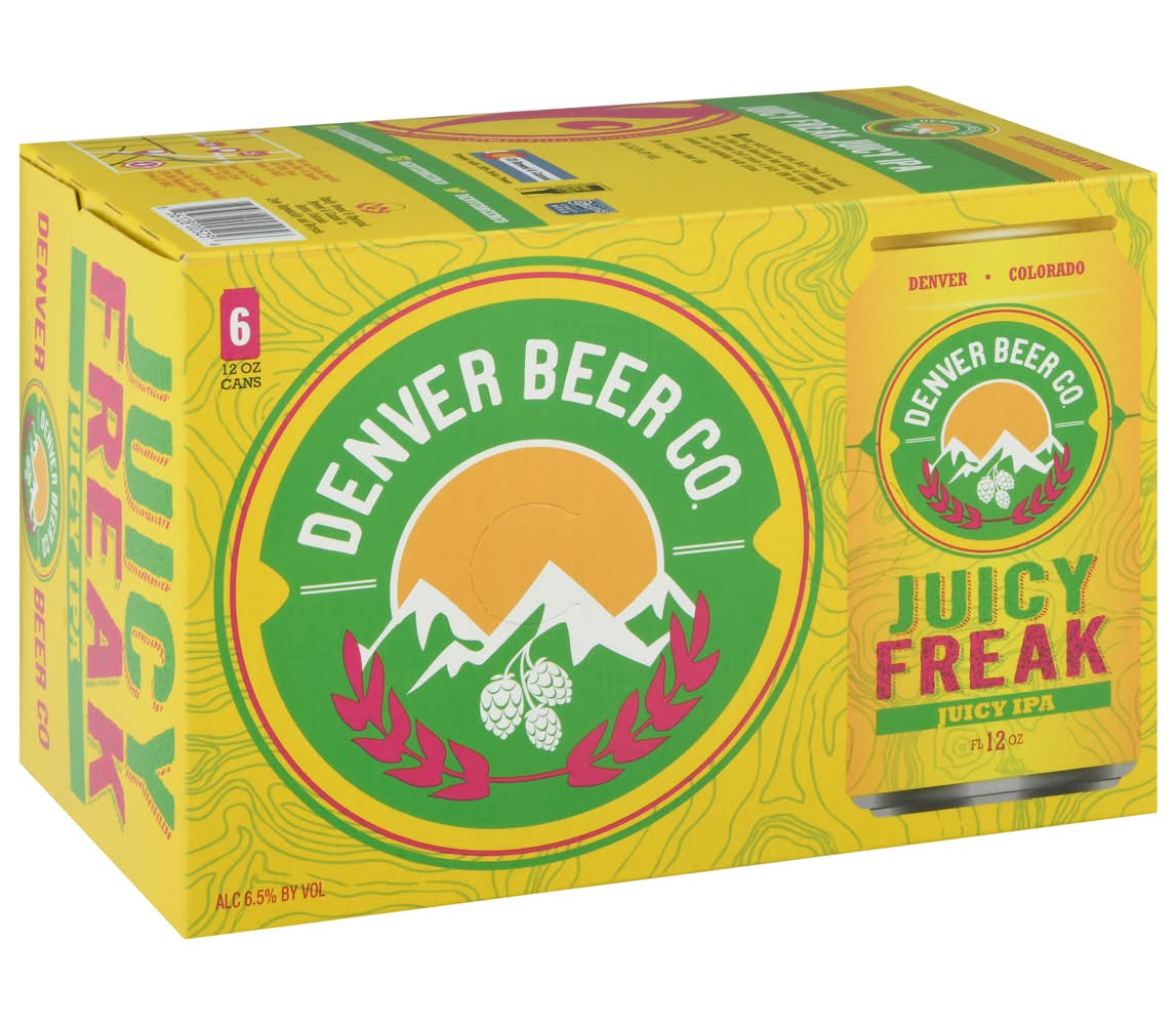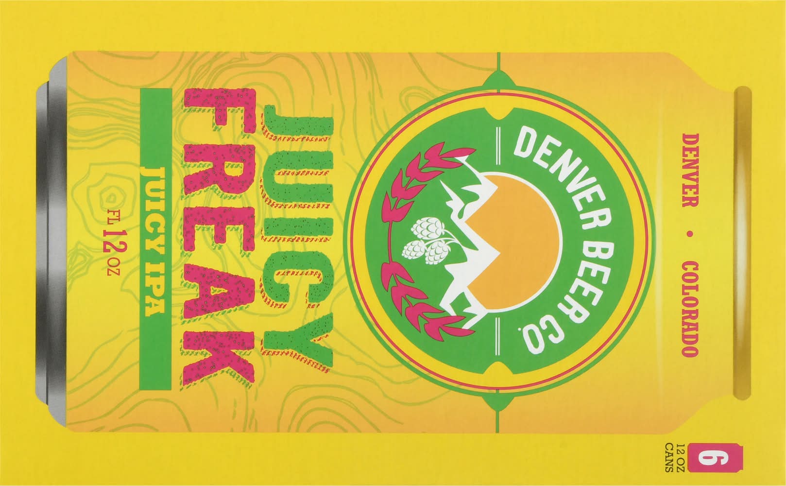 Bursting with bright citrus, juicy freak is tropical hop bliss. Rich American hop notes of orange, mango, pear, and stone fruit create a juicy IPA that is smooth, creamy, and exploding with citrus. For living your best life. Certified Independent Craft Brewers Association. denverbeerco.com. Facebook: denverbeercompany. Instagram: denverbeerco. Twitter: denverbeerco. Gold Medal - specialty beer - 2018 Great American Beer Festival. Bronze Medal - specialty beer - 2011 Great American Beer Festival. Enjoy responsibly and recycle. Alc. 6.5% by vol. 13 Denver Colorado USA. Brewed & canned in Denver, Colorado. • Brand: Denver beer co • Category: New england / hazy ipa • Pack size: 6 • Alcohol by volume: 6.5% • Packaging: Reusable