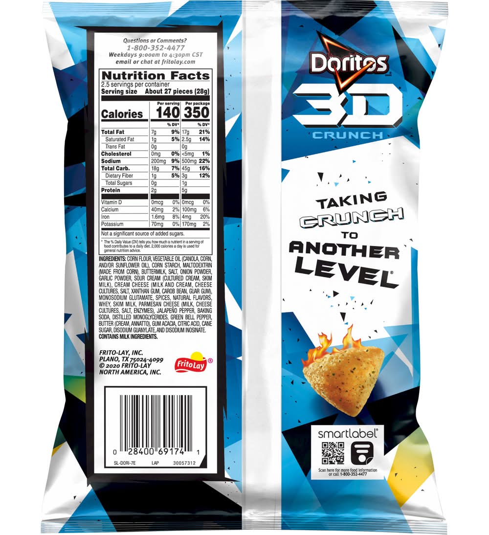 The DORITOS brand is all about boldness. If you’re up to the challenge, grab a bag of DORITOS tortilla chips and get ready to make some memories you won’t soon forget. It’s a bold experience in snacking and beyond. Flavor: Spicy ranch