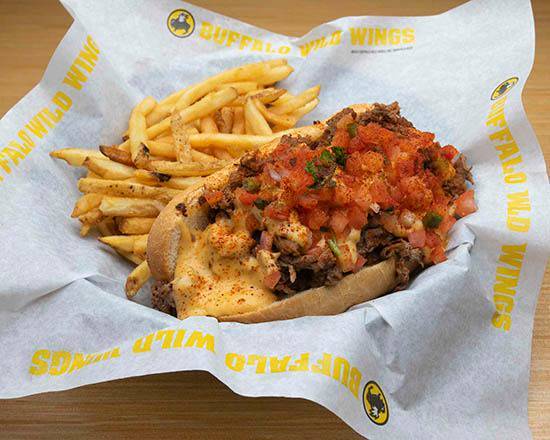 Tender, sliced sirloin seasoned with desert heat is loaded on a grilled hoagie and finished with queso and pico de gallo.