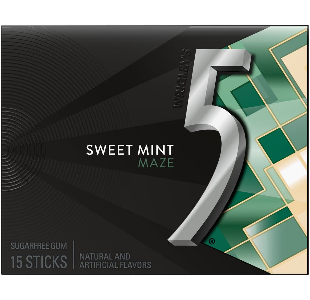 FIV MAZE SWT MNT 15STK • Flavor: Sweet mint • Number of servings: 15 • WM Wrigley JR, Hackettstown, NJ, 07840-1503