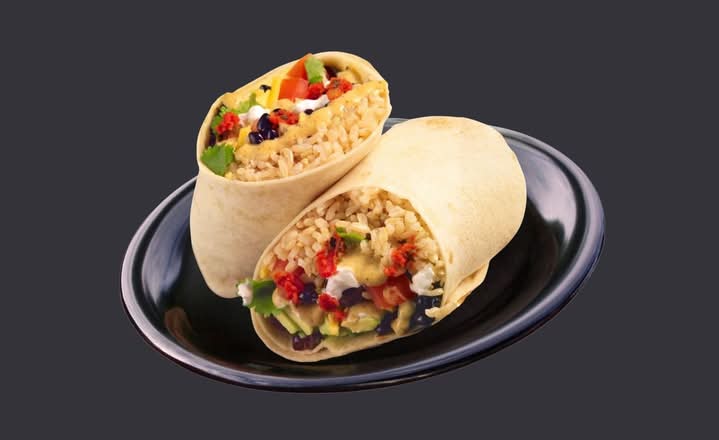 A medium Hot 'n' Jazzy Yumm! Bowl rolled up in a warm tortilla (white or whole wheat) for a handheld meal.