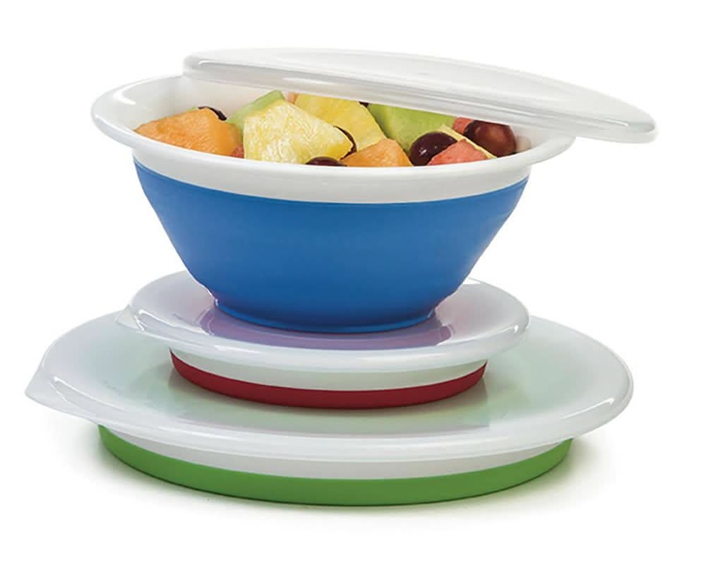 The Prepworks Thinstore Collapsible Storage Bowls are perfect for preparing foods or simply storing leftovers. Leak-resistant lids help reduce the chance of spills. Simply press to collapse the bowls for compact storage. Set includes a 1-1/2 cup (350 ml) bowl, a 3-cup (700 ml) bowl, and a 5-cup (1.2 L) bowl. Dishwasher safe. Weight: 1.1 lbs. Simply press to collapse the bowls for storage Includes 1-1/2 cup, 3 cup, & 5 cup sizes Storage bowls are dishwasher safe | Progressive International Thinstore Collapsible Bowls