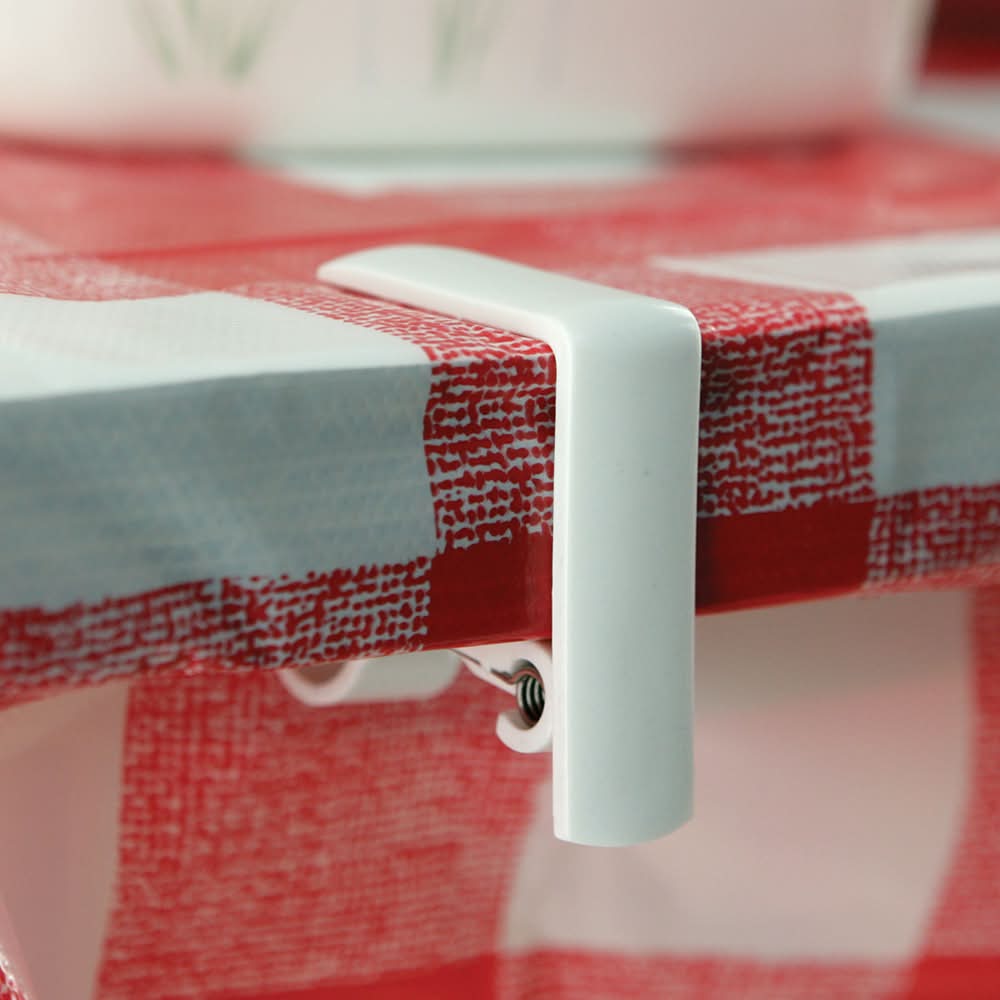 Never lose your tablecloth to the wind again! Premium spring loaded adjustable tablecloth clamps are the perfect way to anchor a tablecloth against wind, sliding and shifting. Keeps your tablecloth securely in place. | Grill World Spring Loaded Tablecloth Clamps, 4-pack