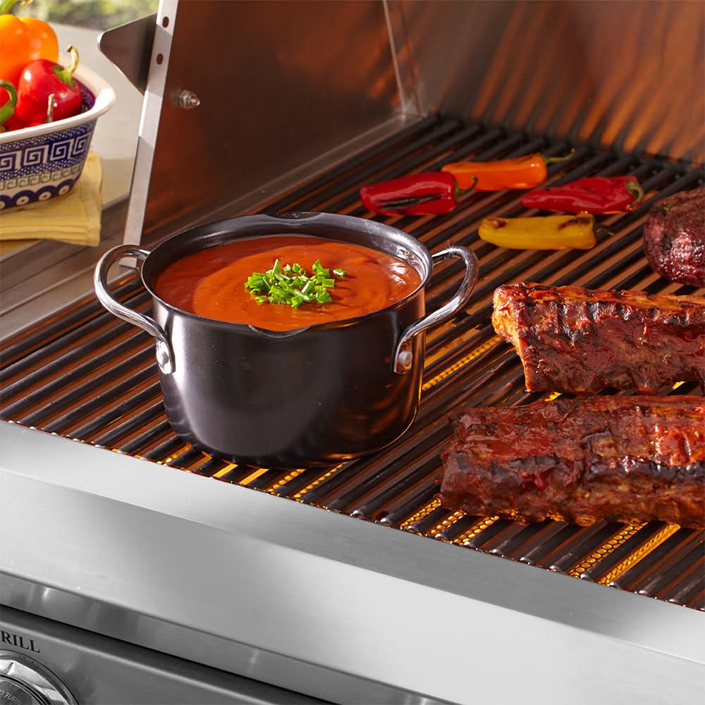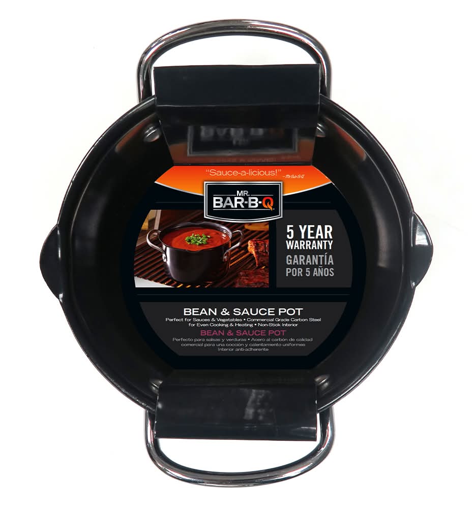 The Mr. Bar-B-Q Sauce and Bean Pot is the perfect pot for sauces and vegetables. Commercial-grade carbon steel construction offers even cooking and heating. Gourmet nonstick interior is easy to clean and maintain. Barbecue sauces, baked beans, creamed corn, and other side dishes cook and stay warm in this compact 1.5-quart pot. Gourmet nonstick interior allows easy cleanup Compact 1.5-quart pot | Mr Bar-B-Q Mr. Bar-B-Q Sauce and Bean Pot