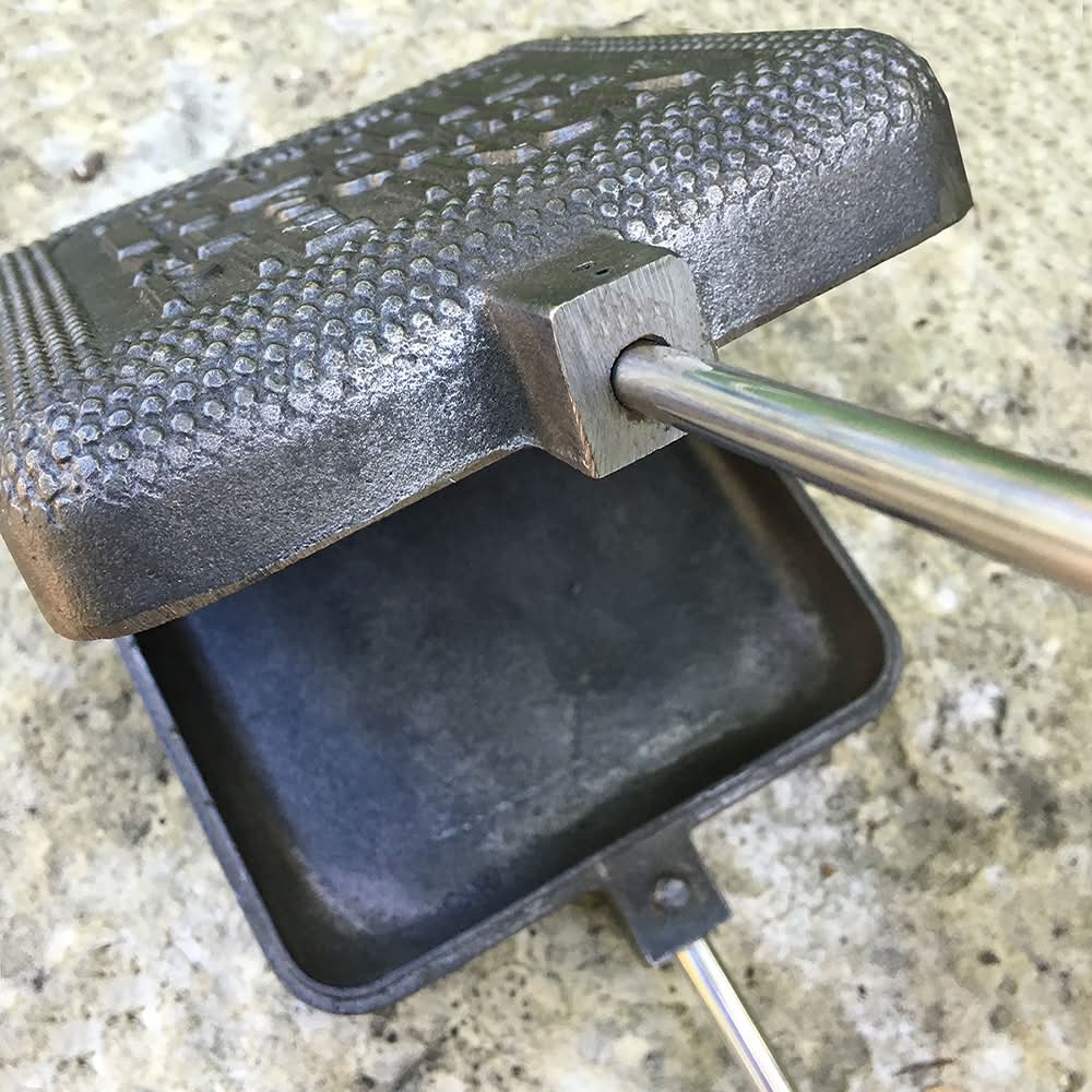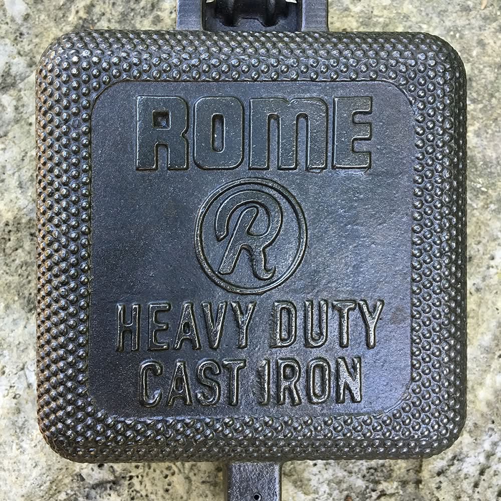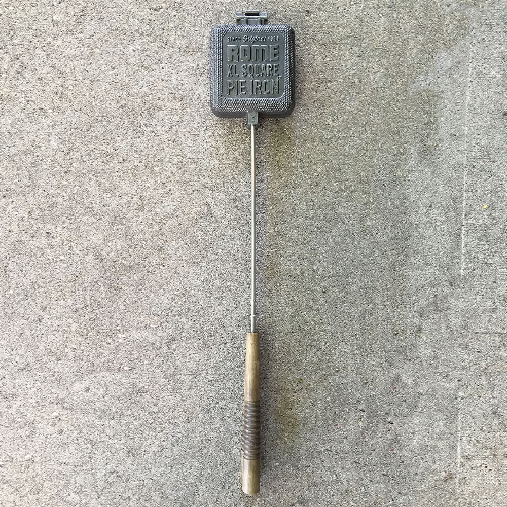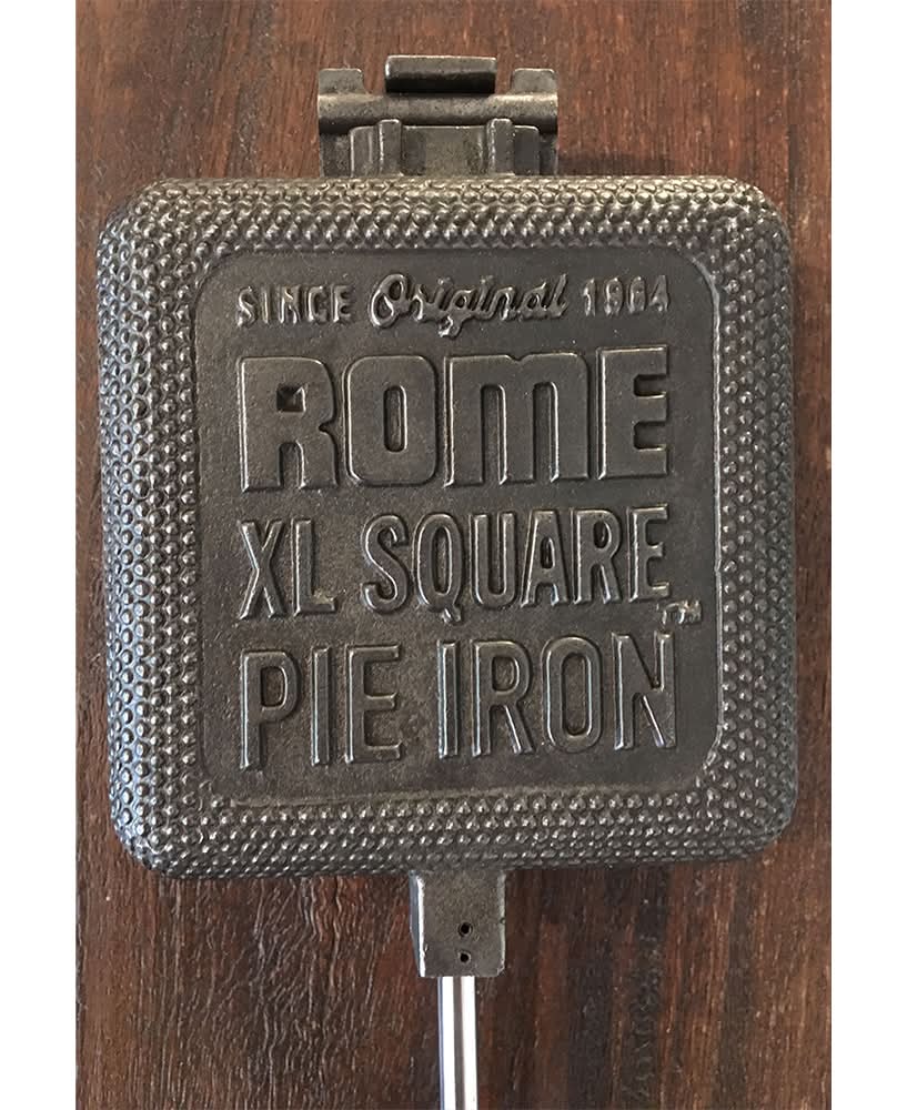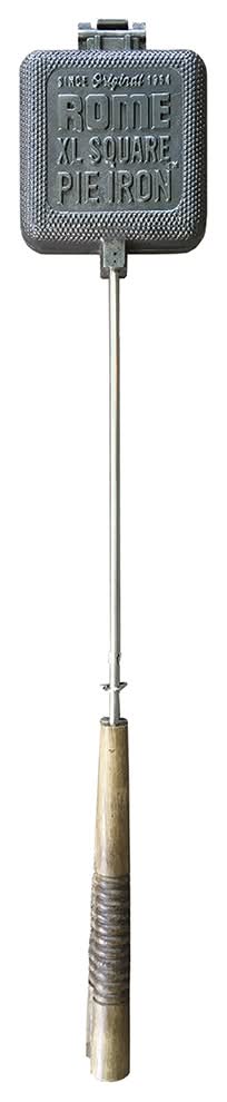 The Rome XL Square Pie Iron has nearly twice the cooking volume of the standard Rome Pie Iron. The larger size allows you to make bigger sandwiches and get creative with pie doughs, tortillas, quick bread mixes, and more.• Cast iron construction• Stainless steel rods and wooden handle• 5" x 5" x 2" cooking dimensions• 28" overall length• Includes recipes and use instructions• 10-year warranty Cast iron with stainless steel rods & wooden handle 5"" x 5"" x 2"" cooking dimensions 28"" overall length