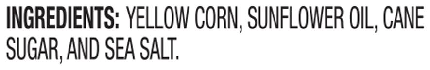 Ingredients: Yellow Corn, Sunflower Oil, Cane Sugar, and Sea Salt Contains: 'Free From Gluten'