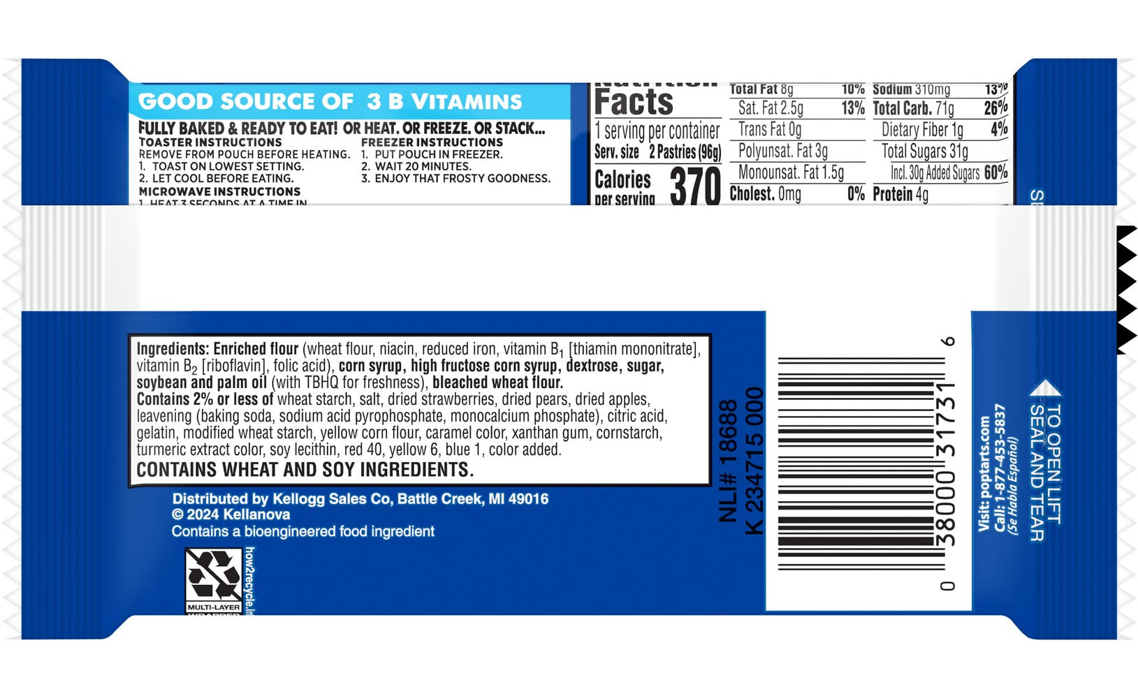 Fully baked & ready to eat! or heat. or freeze. or stack - toaster instructions: remove from pouch before heating. 1. toast on lowest setting. 2. let cool before eating. microwave instructions: 1. heat 3 seconds at a time in pouch until warm enough. 2. let cool before eating. freezer instructions: 1. put pouch in freezer. 2. wait 20 minutes. 3. enjoy that frosty goodness. caution: if pastry is overheated, frosting/filling can become extremely hot and could cause burns. due to possible risk of fire, never leave appliance unattended while in use. children should be supervised. appliances vary. be sure your appliance is clean and functioning correctly. times given are approximate. to open lift seal and tear. to open lift seal and tear.