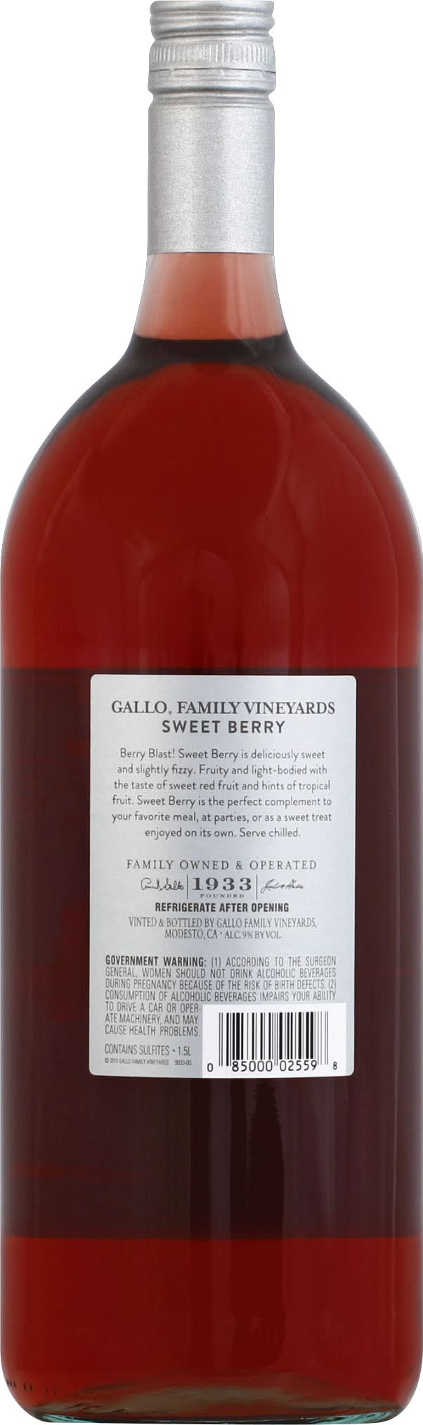 Directions for use: Contains sulfites. Government Warning: (1) According to the Surgeon General, women should not drink alcoholic beverages during pregnancy because of the risk of birth defects. (2) Consumption of alcoholic beverages impairs your ability to drive a car or operate machinery, and may cause health problems. Storage recommendation: Refrigerate after opening.