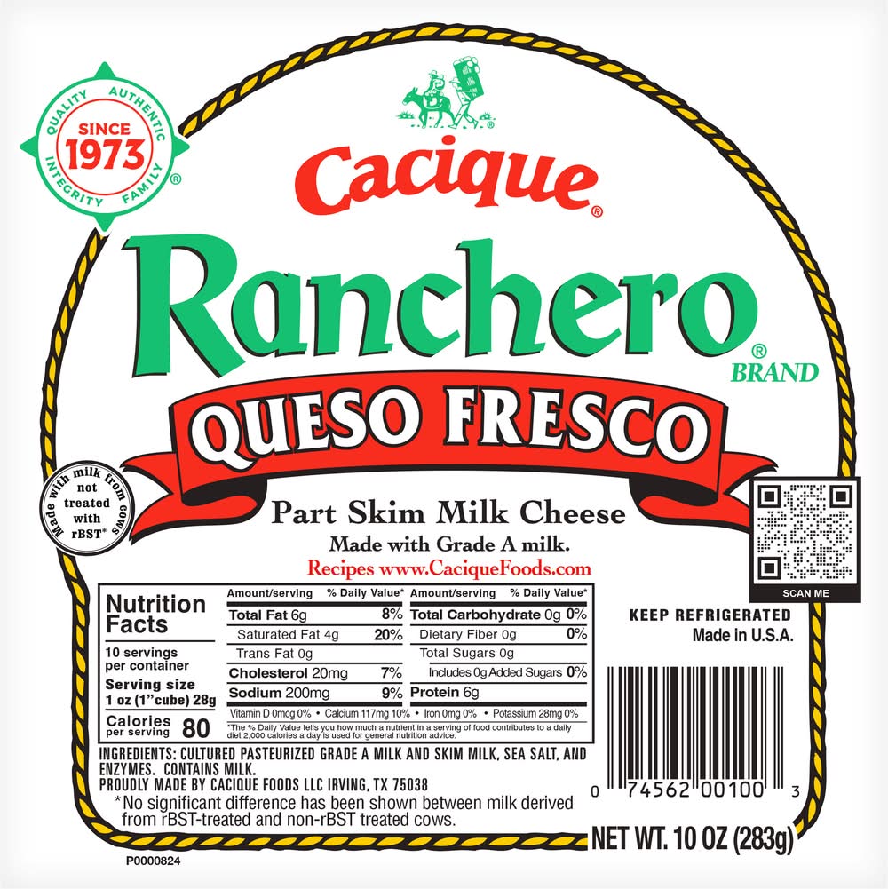 The or fresh cheese is the quintessential embodiment of cheese. traditionally made from raw cow’s milk, ranchers wake early each day to begin the process of making queso fresco. is a soft, moist, curd-style fresh cheese that’s bright, creamy, and pleasantly milky. grade a milk. Cacique, 1410 Westridge Cirlce NIrving, TX 75038