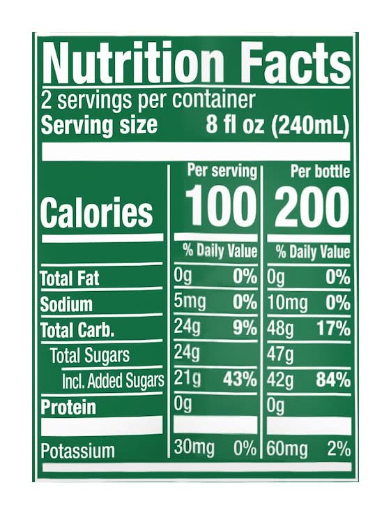 From concentrate flavored with other natural flavors. 200 calories per bottle. Gluten free. Free of artificial sweeteners and flavors. New look. Same great taste. All natural. 10% juice from a blend of apple and pear juices. You've got great taste. Packaging: Reusable