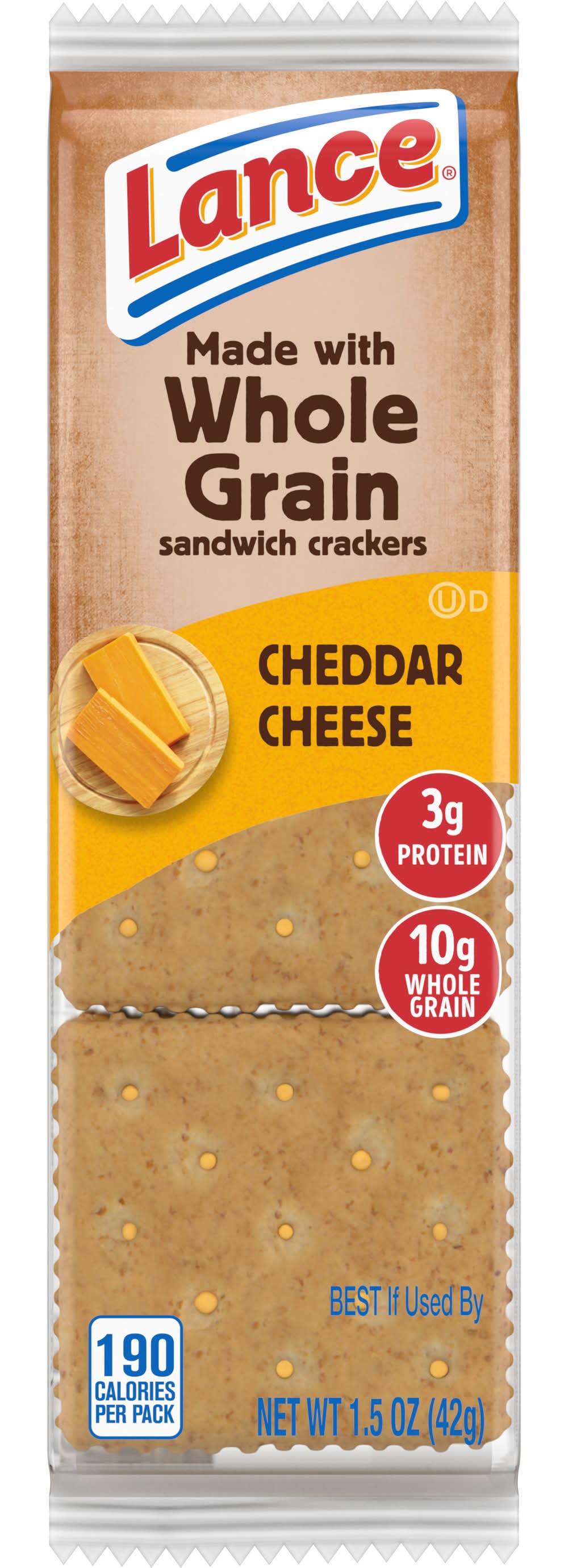 Enjoy a satisfying snack on the go with Lance Made with Whole Grain Cheddar Cheese Crackers. Baked with whole grain and made with a real cheddar cheese filling, these delicious snacks come in convenient packs that can be taken with you anywhere. At Lance, sandwiches mean more: they aren’t just two somethings with whatever in the middle. A Lance sandwich is two awesomes with totally incredible in the middle — and we’ve made them that way for over 100 years. This cheese and cracker creation from Lance is a flavorful, tasty, and portable snack for the whole family. Meaning you’ll be able to enjoy the wonderful taste of Lance Crackers wherever your day ends up taking you. Each individual cracker snack packs has 6 sandwich crackers. So, the next time you’re ready to take a moment or need a quick pick-me-up, make it your one and only Lance Sandwich crackers, the king of all sandwich crackers. Bring it!