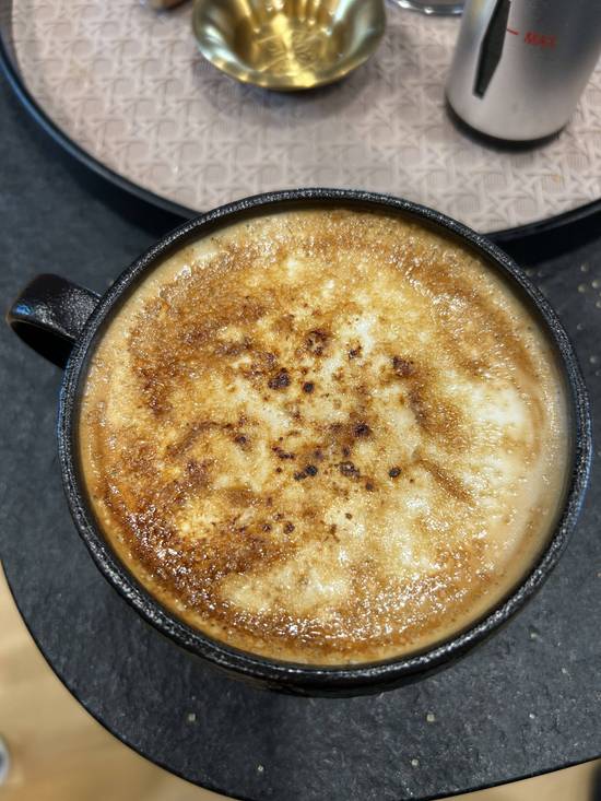 Indulge in a creamy latte with a caramelized sugar twist, inspired by the classic crème brûlée dessert.