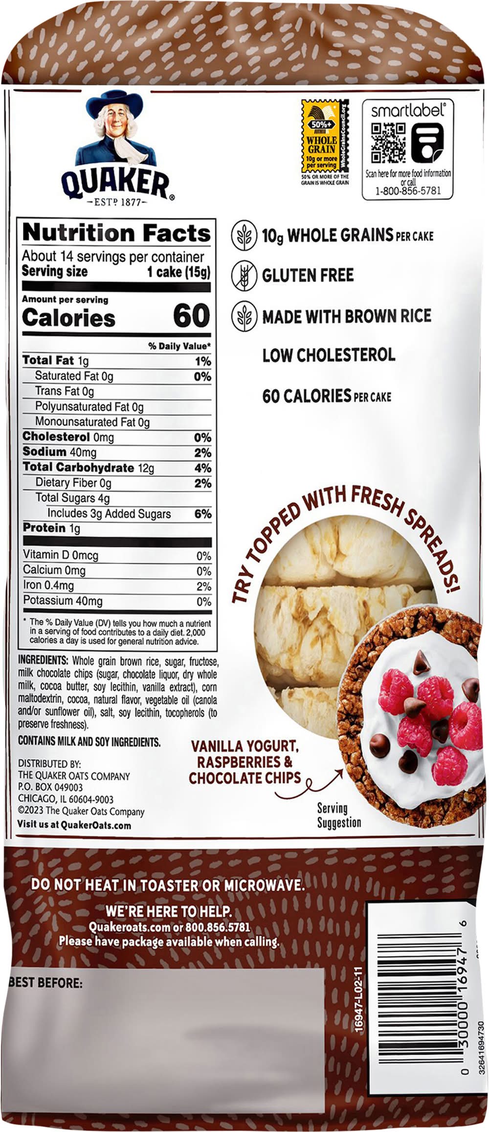 Quaker 100% Whole Grain Rice Cakes, Chocolate (7.23 oz)