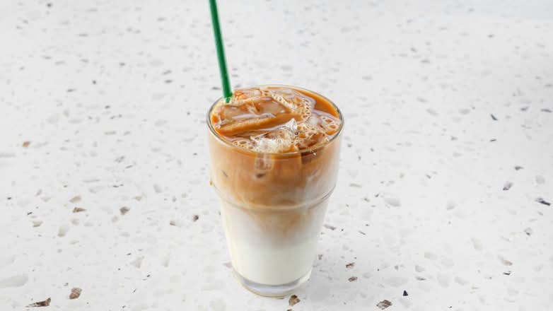 Latte with size and temperature options. Choice of whole, 2%, oat, almond, soy, coconut, or macadamia milk. Flavors include vanilla, pistachio, toffee, and more.