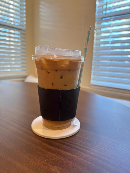 Chai latte - A spiced tea blend with choice of latte size: hot or iced, small or large. Milk options include whole, 2%, oat, almond, soy, coconut, macadamia.