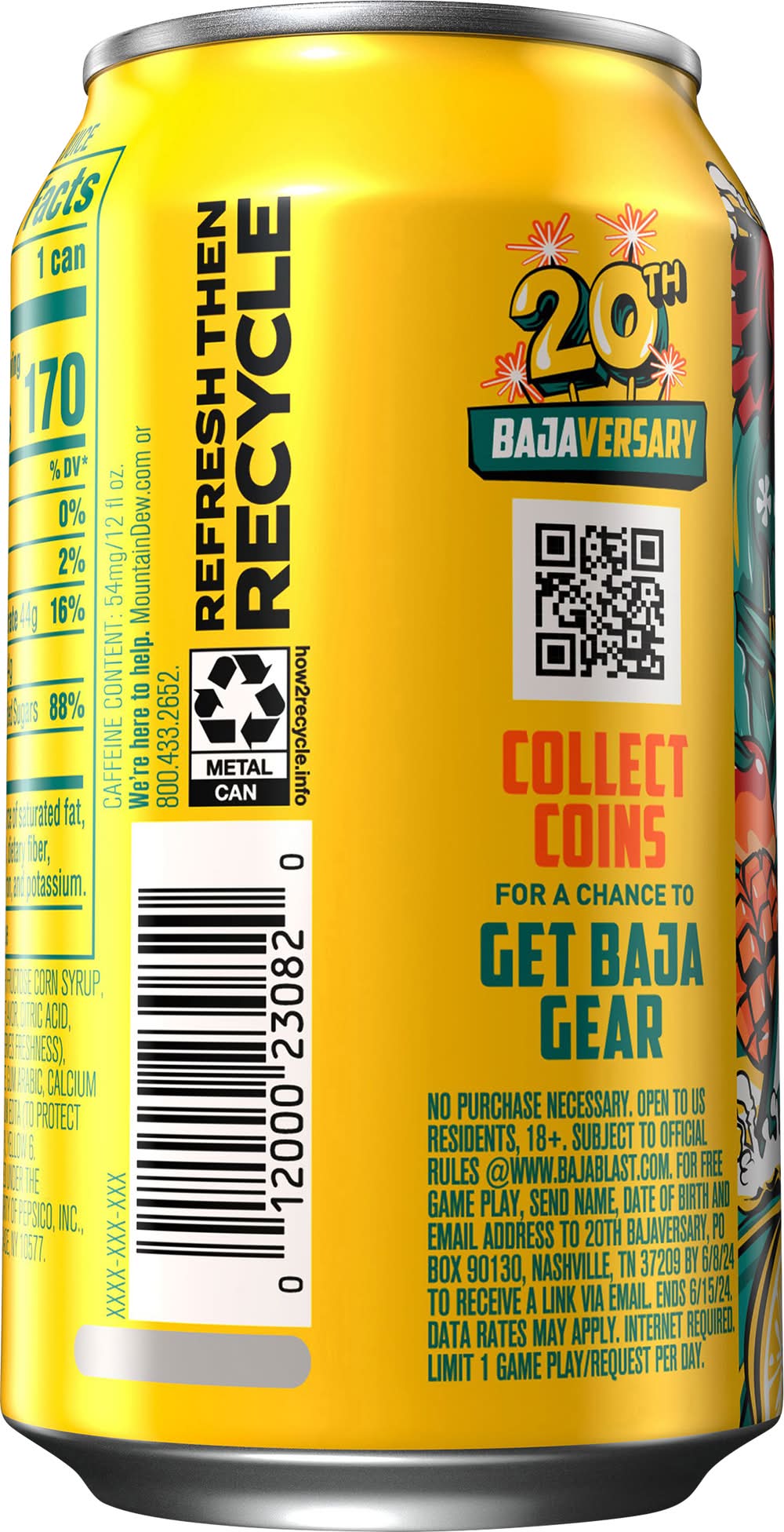 Mountain Dew Baja Laguna Lemonade Soda, Mango Lemonade (12 fl oz)