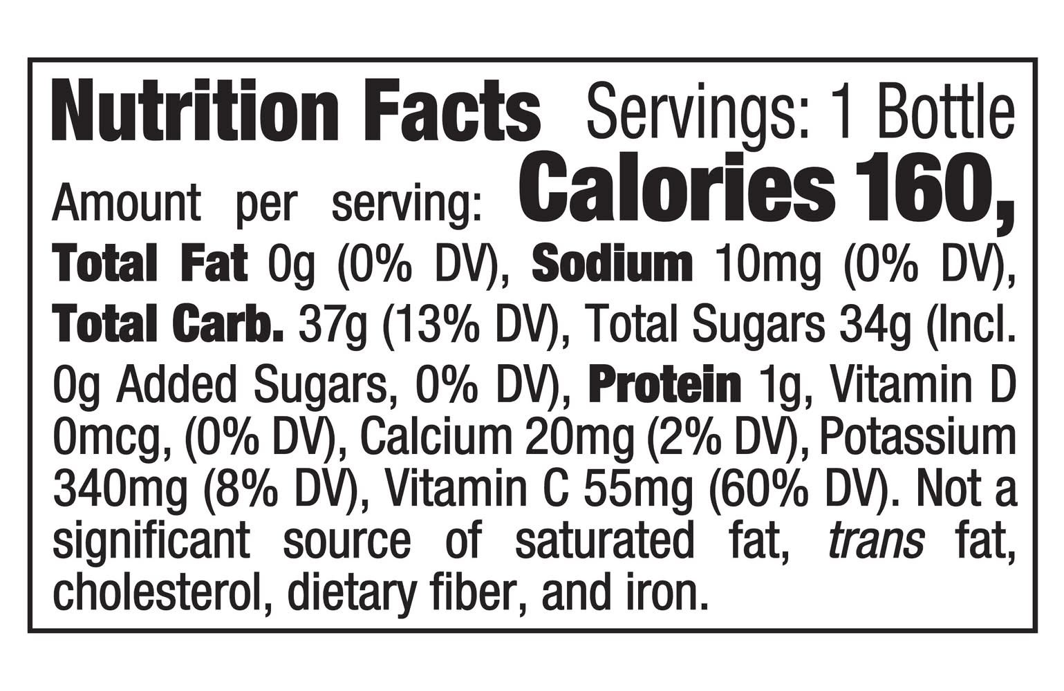 Apple juice from concentrate -with other ingredients. 160 calories per bottle. Pasteurized.