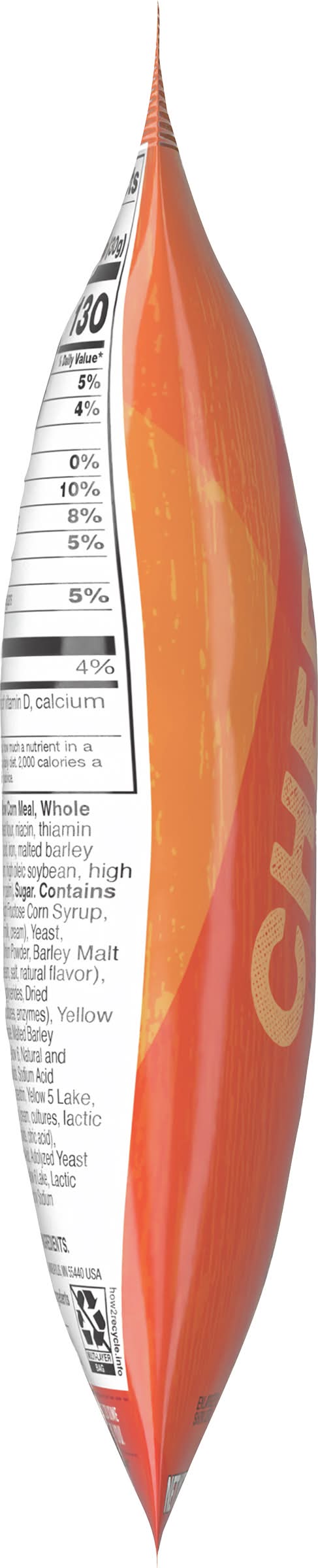 Ingredients: Degermed Yellow Corn Meal, Whole Wheat, Enriched Flour (Wheat Flour, Niacin, Thiamin Mononitrate, Riboflavin, Folic Acid, Iron, Malted Barley Flour), Vegetable Oil (Soybean, High Oleic Soybean, High Oleic Canola, Sunflower and/or Palm), Sugar, Contains 2% or Less of: Salt, Whey, High Fructose Corn Syrup, Sour Cream (Cultures, Nonfat Milk, Cream), Yeast, Baking Soda, Yeast Extract, Onion Powder, Barley Malt Syrup, Butter Concentrate (Cream, Salt, Natural Flavor), Annatto (Color), Distilled Monoglycerides, Dried Cheddar Cheese (Milk, Salt, Cultures, Enzymes), Yellow Corn Flour, Trisodium Phosphate, Malted Barley Extract, Calcium Carbonate, Yellow 6, Natural and Artificial Flavor, Corn Syrup Solids, Sodium Acid Pyrophosphate, Yellow 5, Maltodextrin, Yellow 5 Lake, Sour Cream Solids (Sour Cream [Cream, Cultures, Lactic Acid], Cultured Nonfat Dry Milk Solids, Citric Acid), Monocalcium Phosphate, Citric Acid, Autolyzed Yeast Extract, Disodium Phosphate, Yellow 6 Lake, Lactic Acid, Spice, Freshness Preserved by Sodium Metabisulfite and BHT Contains: Wheat, Milk, Corn, Soybeans, Barley, Sulfites