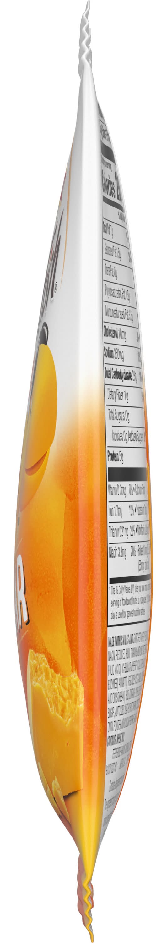 Ingredients: MADE WITH SMILES AND ENRICHED WHEAT FLOUR (FLOUR, NIACIN, REDUCED IRON, THIAMINE MONONITRATE, RIBOFLAVIN, FOLIC ACID), CHEDDAR CHEESE ([CULTURED MILK, SALT, ENZYMES], ANNATTO), VEGETABLE OILS (CANOLA, SUNFLOWER AND/OR SOYBEAN), SALT, CONTAINS 2% OR LESS OF: YEAST, SUGAR, AUTOLYZED YEAST EXTRACT, PAPRIKA, SPICES, CELERY, ONION POWDER, MONOCALCIUM PHOSPHATE, BAKING SODA. CONTAINS: WHEAT, MILK. Contains: CONTAINS: Gluten, Milk/Dairy, Wheat