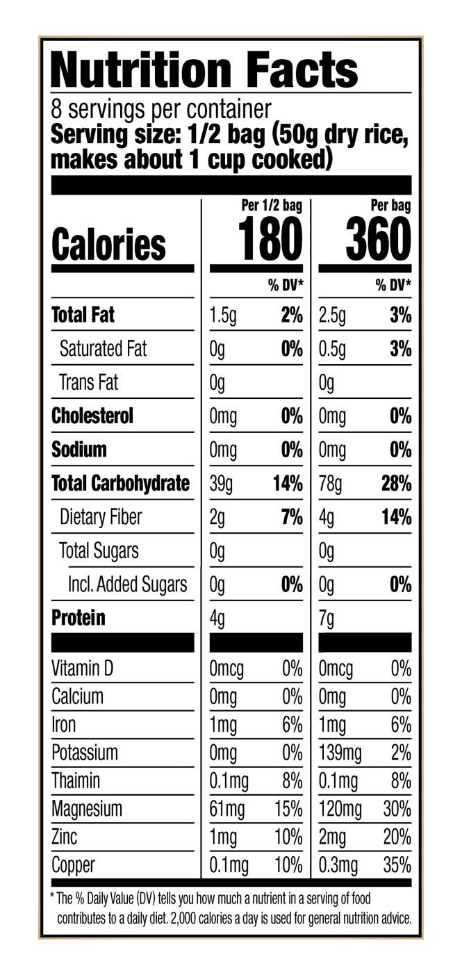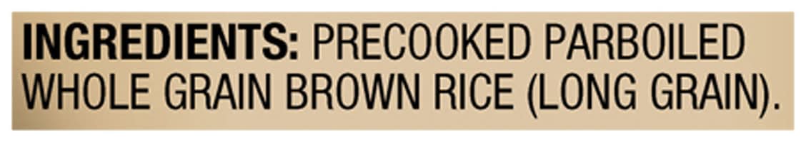 Ingredients: Precooked Parboiled Whole Grain Brown Rice