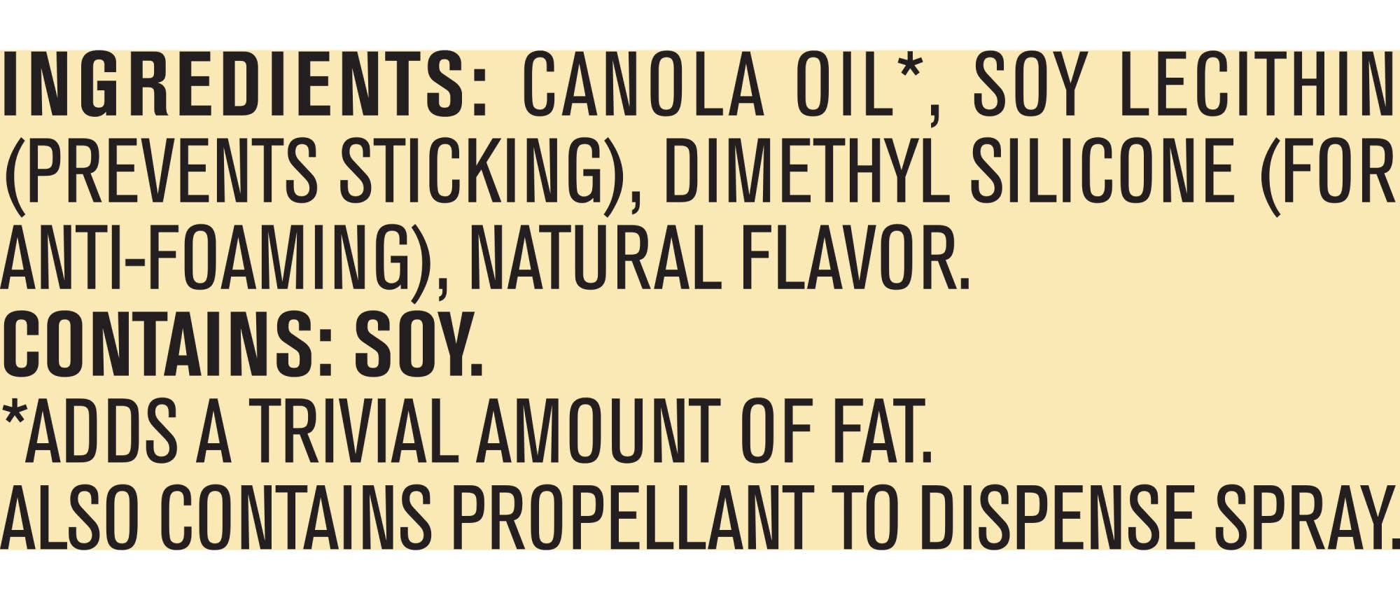 Ingredients: Soy Lecithin (Prevents Sticking), Dimethyl Silicone (For Anti-Foaming), Canola Oil Contains: Soy