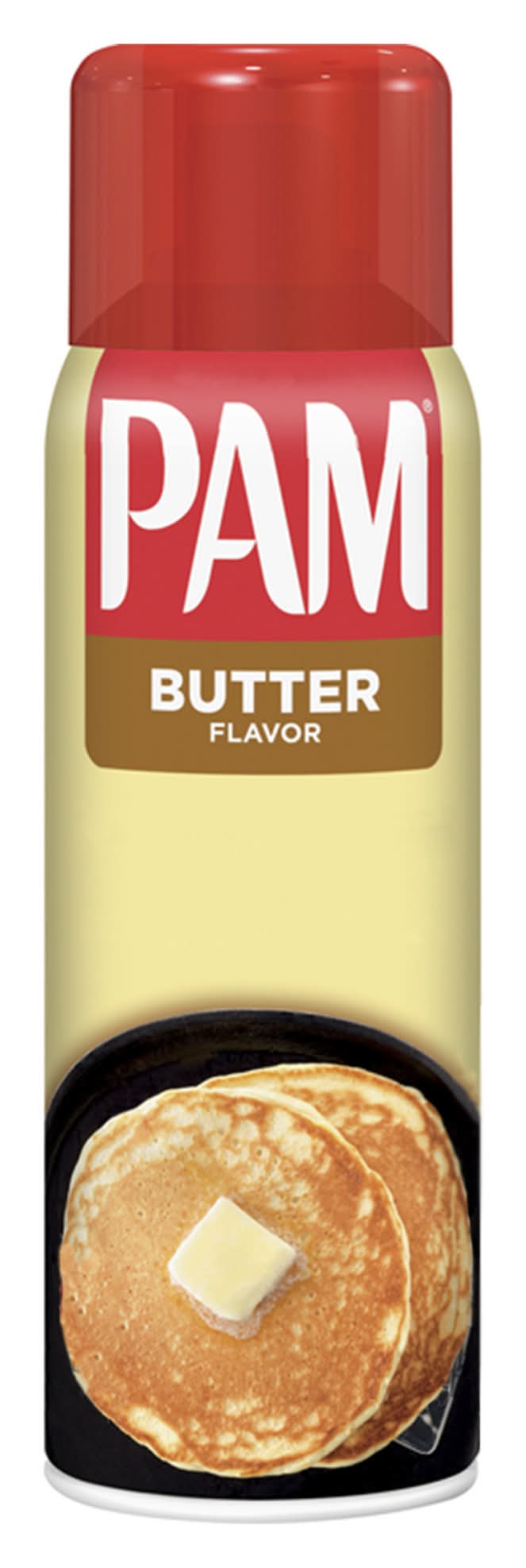 PAM Non Stick Butter Cooking Spray makes cleaning cookware quick and easy. Formulated for superior no-stick performance, this no stick spray for cooking will help you effortlessly pull off your next meal. This butter flavored spray is perfect for eggs, pancakes or grilled cheese sandwiches. PAM Nonstick Butter Spray has 0 calories per serving and is great for fat free cooking. Conagra Brands, PO Box 3534,Chicago,IL,60654