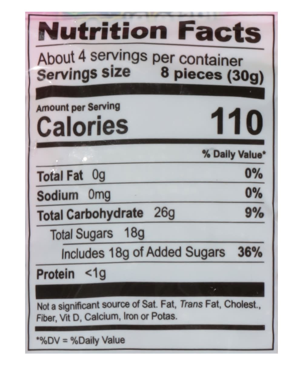 Ingredients: Sugar, Tapioca Syrup, Wheat Flour, Pineapple Juice, Malic Acid, Citric Acid, Artificial Flavors, Mono and Diglycerides, and Artificial Color (FD&C Blue 1, FD&C Yellow 5) Contains: Wheat, Milk