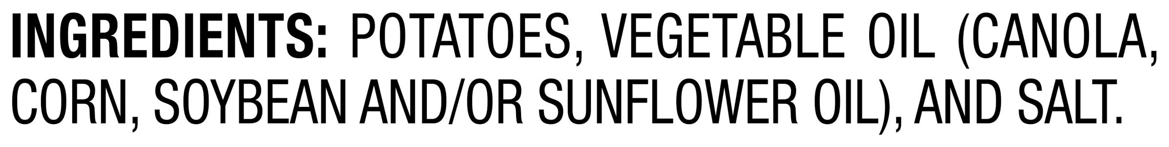 Ingredients: Potatoes, Vegetable Oil (Canola, Corn, Soybean and/or Sunflower Oil), and Salt Contains: Soybeans