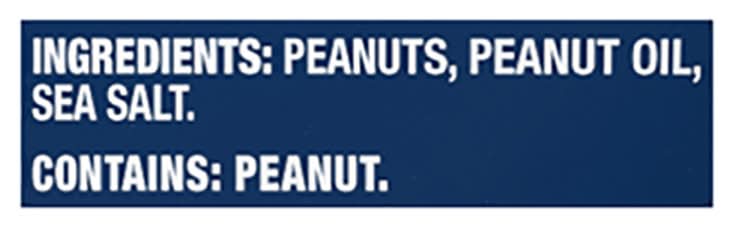 Ingredients: Peanuts, Peanut Oil, Sea Salt Contains: Peanuts, Tree Nuts