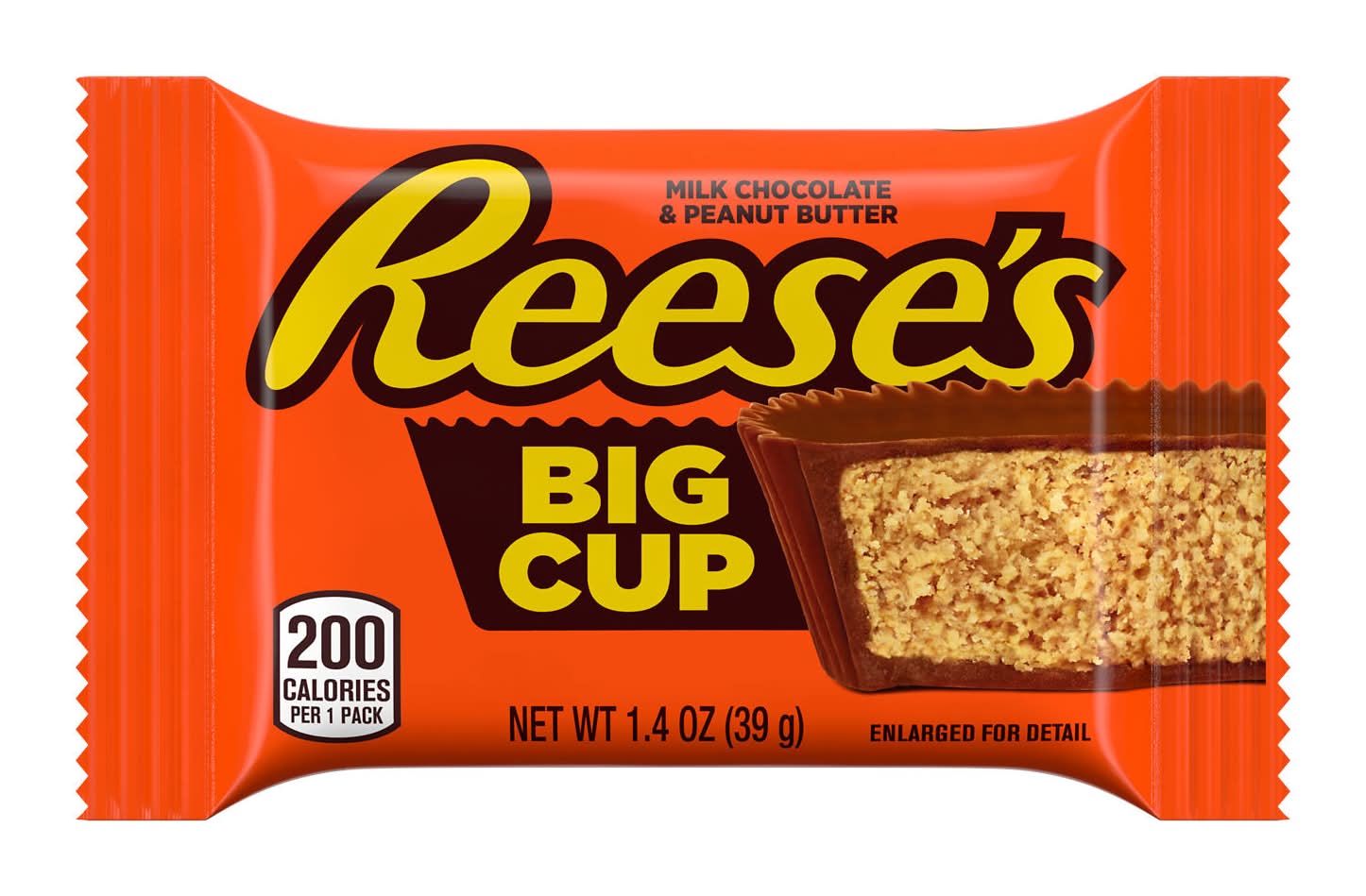 Name a more iconic duo. Everyone will wait... You can't beat the old-fashioned, match made in heaven when it comes to creamy milk chocolate combined with delicious peanut butter. Get ready to taste perfection! REESE'S Big Cup milk chocolate peanut butter cup candy packs are your go-to snack. Bring a few packs of kosher certified, gluten free candy along to the next sporting event, party, movie marathon, game night and so many other activities for an extra bite of peanut butter goodness. Store them in your pantry to slip into lunch boxes and purses for a midday surprise. REESE'S Big Cup milk chocolate peanut butter cups are a sweet delight that you can bite, break, dunk or nibble on. Yes! Dunk them into a cold glass of milk, a cup of hot chocolate or in your coffee to experience the melty goodness. Put a unique twist on cookies, cupcakes and ice cream decadents with whole, halved or broken REESE'S cups. REESE'S Big Cup peanut butter cup candies are a gluten free and kosher product that goes well with almost everything, especially during your holiday celebrations. Add them to Christmas stockings, Halloween candy bowls, Valentine's Day gift bags and Easter baskets. Just don't forget to save a few for yourself! Flavor: Peanut butter