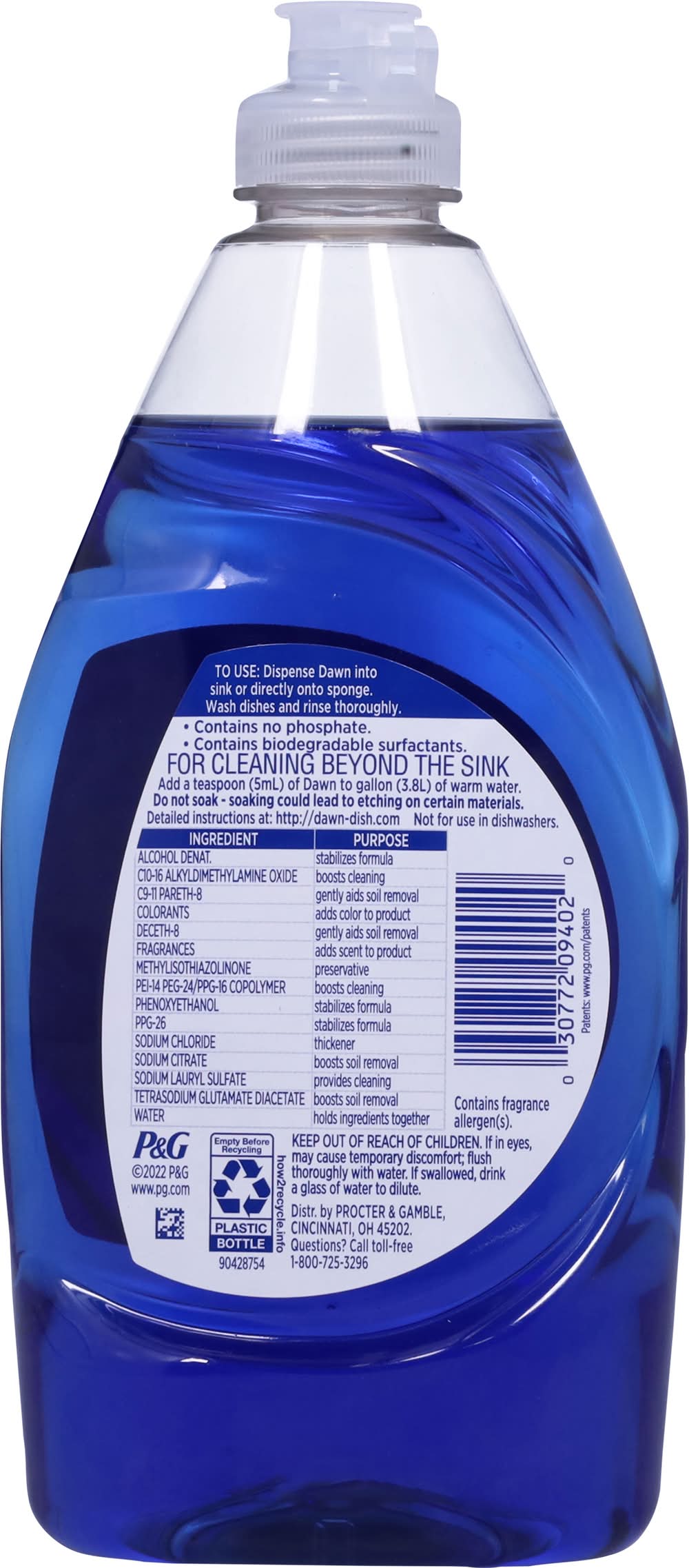 Usage of instructions:to use: dispense dawn into sink or directly onto sponge. wash dishes and rinse thoroughly. for cleaning beyond the sink: add a teaspoon (5ml) of dawn to gallon (3.8l) of warm water. do not soak - soaking could lead to etching on certain materials. detailed instructions at: http://dawn-dish.com. not for use in dishwashers. - directions: to use: dispense dawn into sink or directly onto sponge. wash dishes and rinse thoroughly. for cleaning beyond the sink: add a teaspoon (5ml) of dawn to gallon (3.8l) of warm water. do not soak - soaking could lead to etching on certain materials. detailed instructions at: http://dawn-dish.com. not for use in dishwashers.